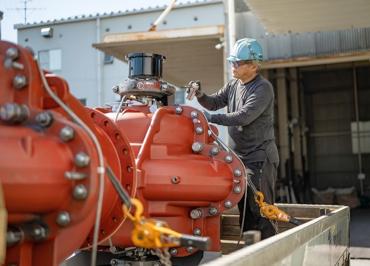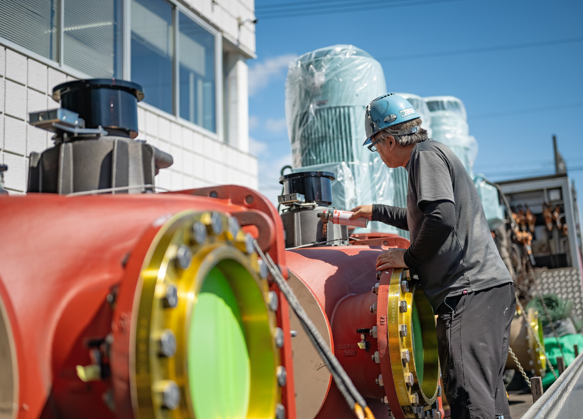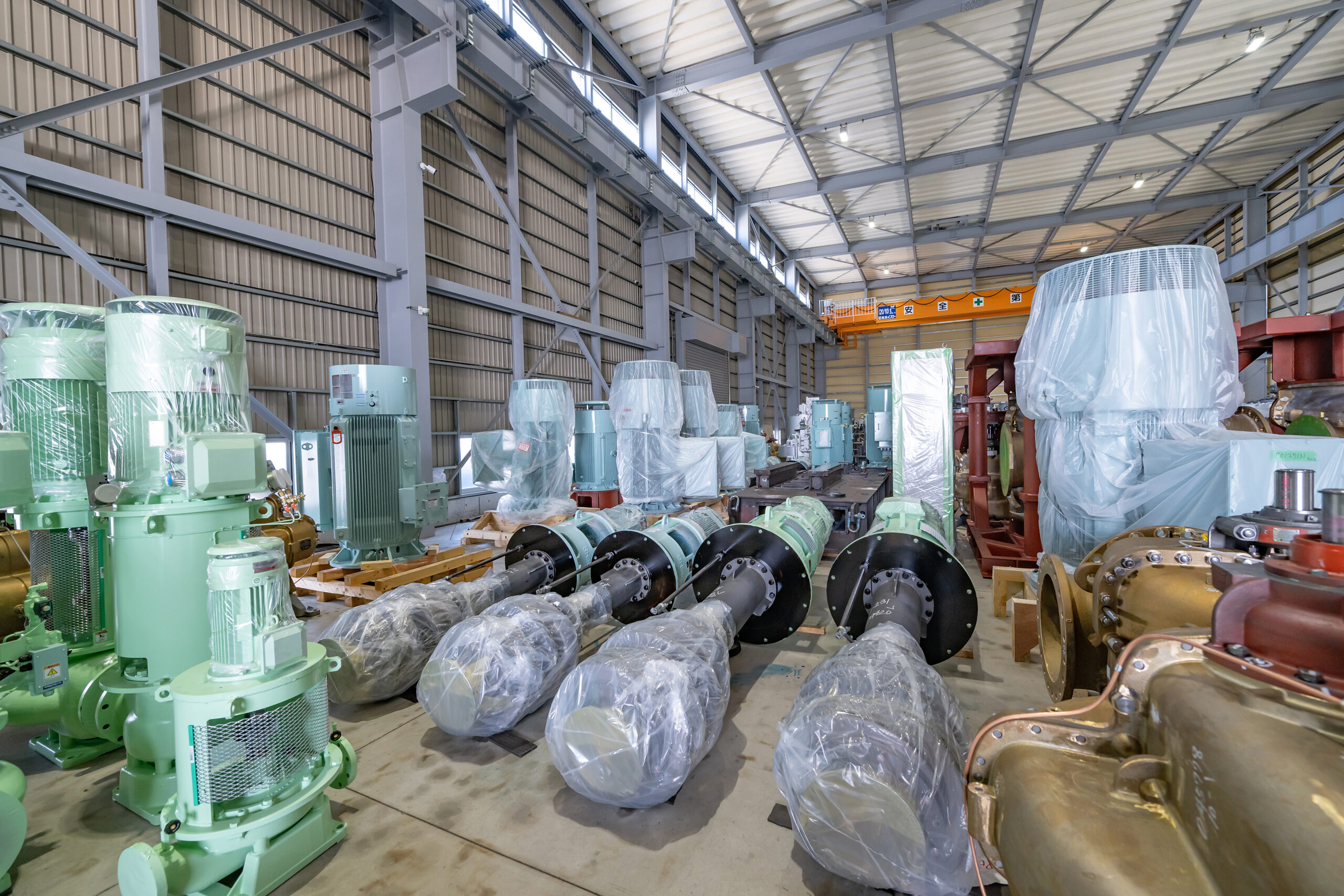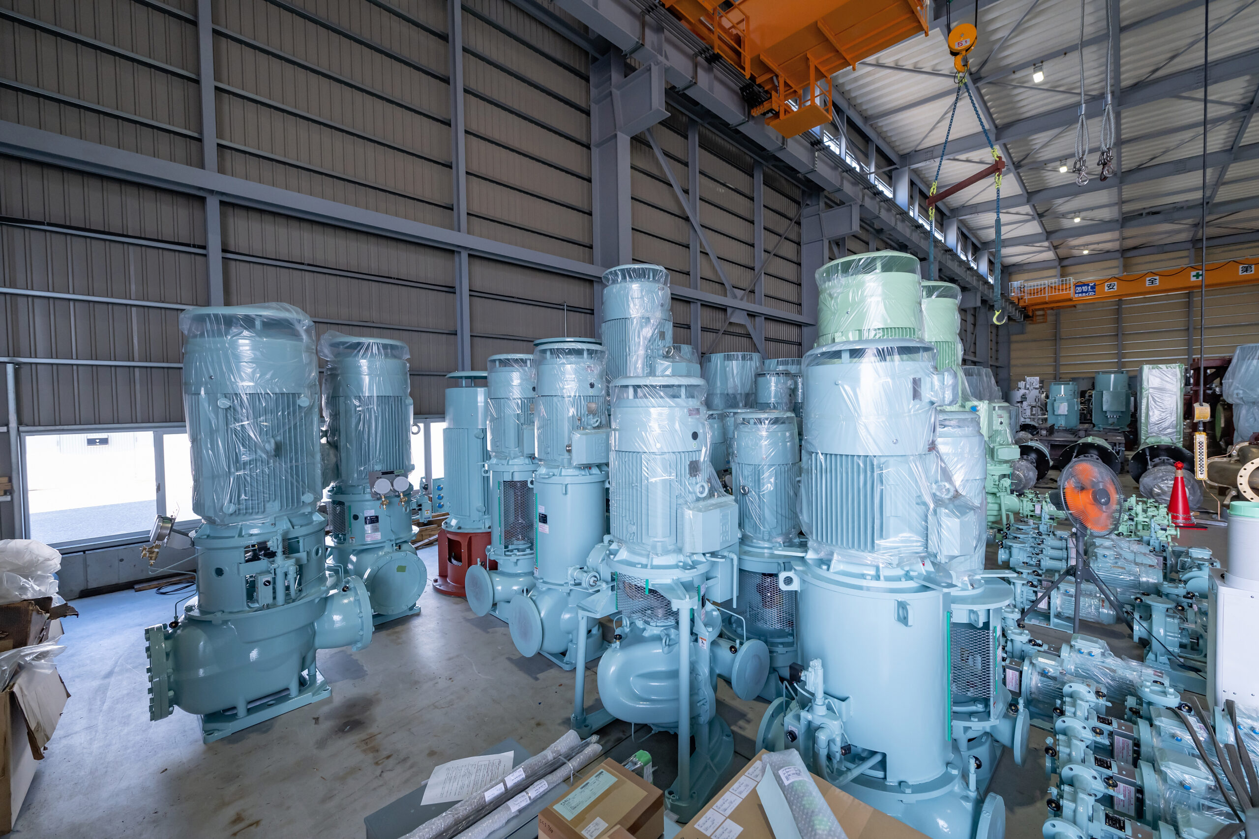 船舶用の各種ポンプを塗装ブースで養生し、塗装・仕上げを行い、国内造船所及び海外輸出向けの梱包工場まで輸送しています。