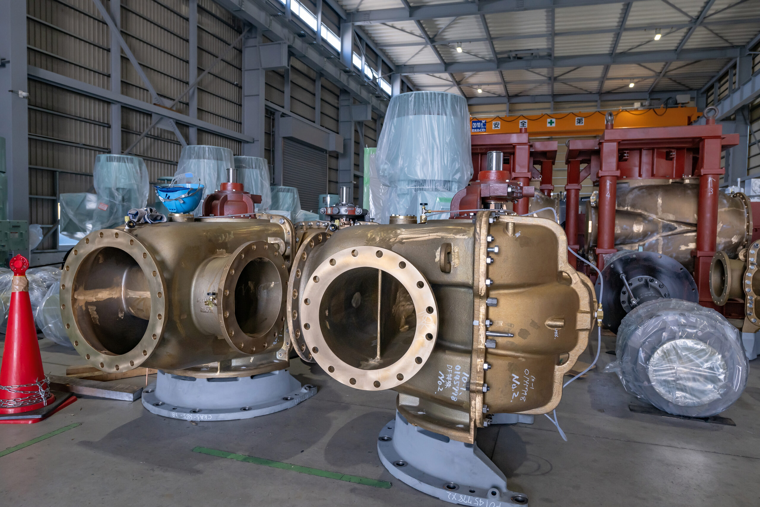製品の保管、管理から出荷までを行っています。倉庫事業は昭和の時代から続く長い歴史があり、現在の施設は平成に入ってから新設されたものです。20トンクレーンを2基備えていて、最大で40トンまでの重量物に対応可能です。重機やタービンのような大型の荷物を安全に保管・出荷できる体制が整っています。